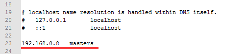 4.在集算器所在机器中,找到hosts文件,添加redis所在机器的IP地址与主机名称,例如redis所在机器IP为192.168.0.8,主机名为:masters,那么如下图设置: