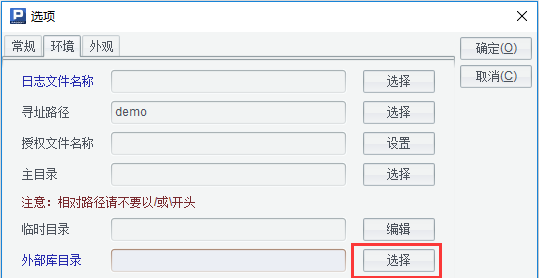 点击【外部库目录】后的【选择】按钮进入选择外部库界面,如下图所示: