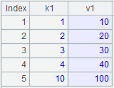 =create(k1,v1).record([1,10,2,20,3,30,4,40,10,100]) |
