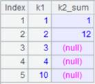 对组表中附表table2的列k2分组求和,并将列名命名为k2_sum
