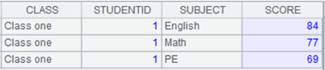 =demo.cursor("select * from SCORES where CLASS = 'Class one'") |