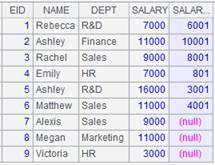 =A7.joinx@o(F1;EID,A3:EMPLOYEEID,~:SALARY1;5) |