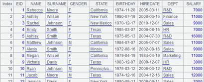 =demo.query("select * from employee order by GENDER,STATE,DEPT") |