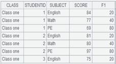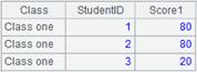 =A1.groups(CLASS:Class,STUDENTID:StudentID;iterate(~~*2): Score1) |