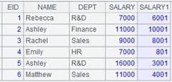 =A1.joinx@o(F1;EID,A2:EMPLOYEEID,~:SALARY1;5) |