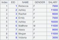 =demo.cursor("select EID,NAME,GENDER,SALARY from EMPLOYEE where EID<10") |