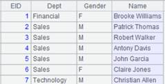 =A2.memory(EID,Dept,Name;EID<5) |