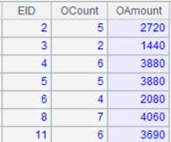 取基表的部分列并筛选出EID<5的数据生成内表