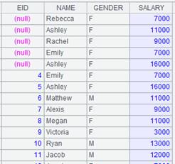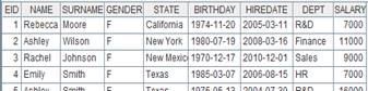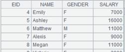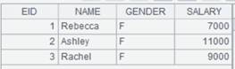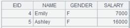 =demo.query("select EID,NAME,GENDER,SALARY from EMPLOYEE where EID>3") |