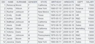 =demo.query("select * from EMPLOYEE where GENDER = 'M' and EID <15") |