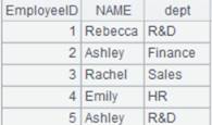 =A1.new(EID:EmployeeID,NAME, #3:dept) |