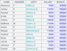 =demo.query("select NAME,GENDER,DEPT,SALARY from EMPLOYEE") |