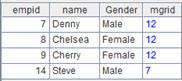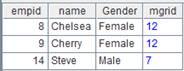 列出Diana的下属的关系。由此看出Diana是empid=7的领导,而empid=7为empid=14的上司 |