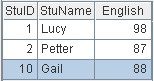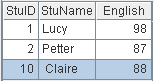 =A1.record([1,"Lucy",98,2,"Petter",87]) |