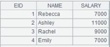 =demo.cursor("select EID,NAME,SALARY from EMPLOYEE" ) |