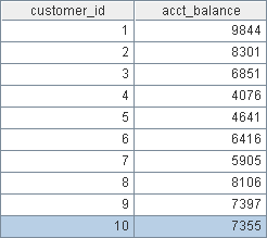 下面是一个企业订单情况的数据库内的一些表格,首先是Customers表,记录了客户ID和客户的账户余额: