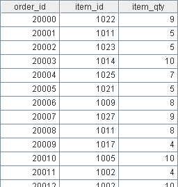 >A3.keys(customer_id), A2.keys(order_id), A4.keys(item_id) |