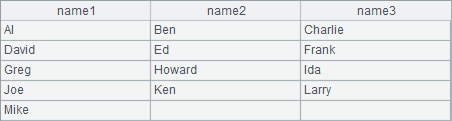 问题很简单,将下面的Names表改成3列显示,分别为name1,name2,name3,得到的代码最好也可以方便的实现任意多列的显示。