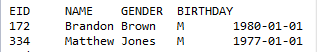$(demo) select EID, NAME+' '+SURNAME FULLNAME, GENDER, STATE, BIRTHDAY from EMPLOYEE |