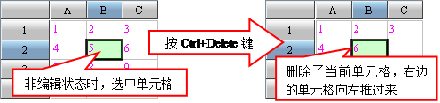3. Ctrl+Delete删除本格,后面补回