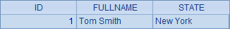 >demo.execute("update TEST set STATE='New York' where ID=1") |