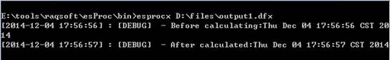 无返回结果的文件,往往用来读写文件或数据库。如这个网格中,创建了一些模拟数据,存储到文本文件Data1.txt中。使用时,只需在esprocx后面指明需要执行的dfx文件。执行时,屏幕上会显示开始执行以及结束执行的消息,如下: