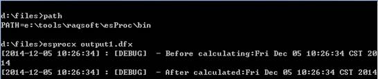如果esprocx文件所在路径被设入了操作系统的path列表,可以直接运行esprocx,而不必在安装目录的esProc\bin路径下。但是,调用的dfx文件必须指明全路径,或者要位于当前路径中,如: