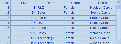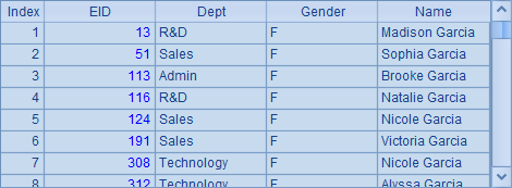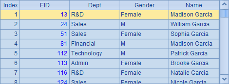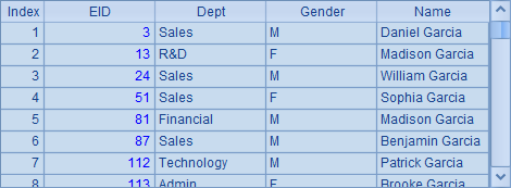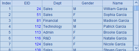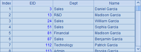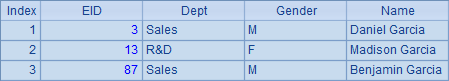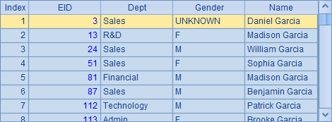 =A2.cursor(EID,Dept,Name; right(Name,6)=="Garcia") |