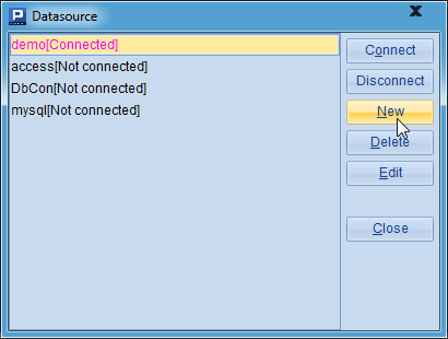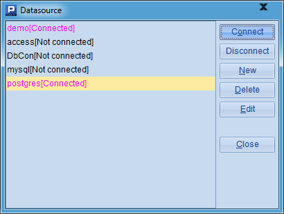 1. 在Tool菜单项中,点击数据源连接Datasource connection打开数据源管理器;