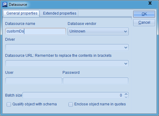 如果需要连接的JDBC数据库不在集算器提供的范围内,可以使用Unknown类型来添加。配置界面如下: