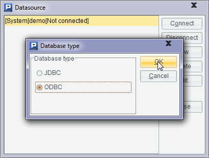 在集算器的数据源配置中,新建一个ODBC数据源: