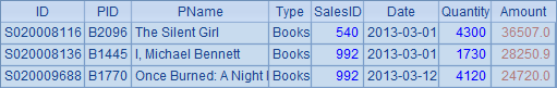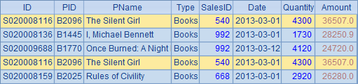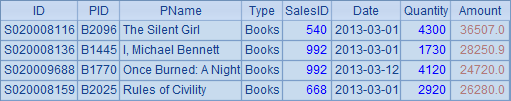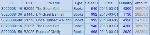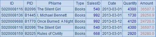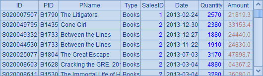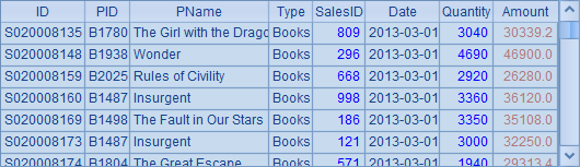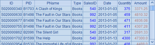 下面的网格中,将记录按SalesID字段升序排列,SalesID一样时将按Date降序排列。排列和序表在排序时的写法完全一样,这里仅以B1中的排列为例: