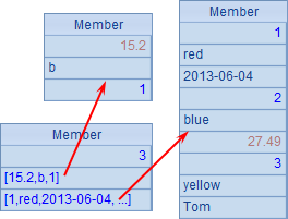 可以看到,序列A3的成员是多个序列,这些序列的成员都是记录。