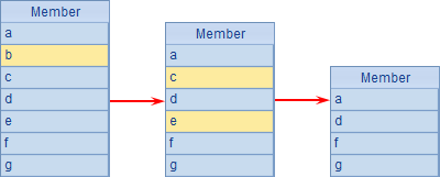 A2中删除第2个成员,A3中继续删除第2、第4个成员,分布执行时,A1中变化如下: