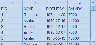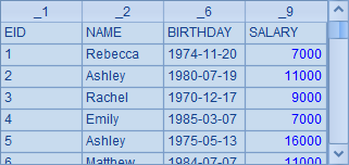 =A1 .import@t(EID,NAME,BIRTHDAY,SALARY) |