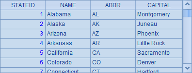 =demo.query("select STATEID, NAME, ABBR, CAPITAL from STATES") |