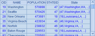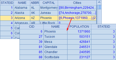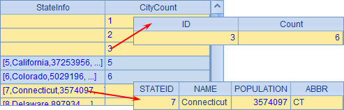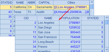 其中的Cities字段为该州的城市记录,也可以双击查看。