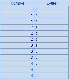 可以看到,结果序表中的记录是数字和字母配对的所有组合。