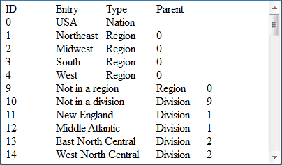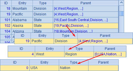 其中,Geography.txt的数据如下,在其中记录了各个层次的地区数据,包括地区,州等,同时通过Parent字段指明当前地区所处的上层地区的编号: