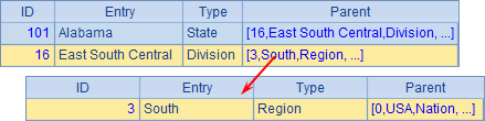 A7中的结果则查询到South出现在Parent中为止,结果如下: