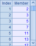 在例子中,A1中存储找到的质数序列;A2循环从2到1000的整数;在B2中循环质数列表,一旦发现当前A2中的数会被某个质数整除,就用next A2命令获取A2中的下个数;如果当前质数列表中所有数都不能整除A2中的数,说明找到了新的质数,将其添加到A1的序列中。其中,D2中的next C命令指定跳过以为主格的循环体剩下的代码,直接进入下轮循环。执行后,A1中,1000以内的质数序列如下: