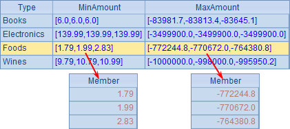 =A6.groups(Type;top(3,Amount):MinAmount,top(3,-Amount):MaxAmount) |