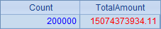 =A6.groups(;count(~):Count,sum(round(decimal(Amount),2)):TotalAmount) |