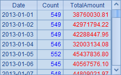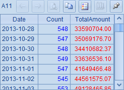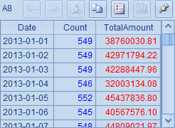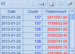 =A7.groups(Date;sum(Count):Count,sum(round(decimal(TotalAmount),2)):TotalAmount) |