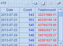 在集算器中,可以使用cs.groupx() 函数来计算大结果集的分组聚合。在下面我们用商品订单的每日统计结果模拟一下大数据结果集的使用。为了体会内存的限制,这里要求每次只能读取100条记录,那么需要分组聚合计算每天的订单时,必须使用groupx函数: