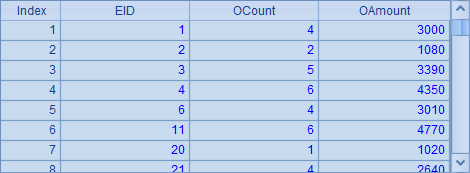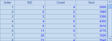 =A7.groups(s.EID:EID;count(~):Count, sum(o.Amount):Sum) |