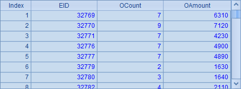 首先,因为otable中数据更多,所以分段读取后,每段读取到的记录数量也更多。其次,由于在存储orders.ctx时,设定了按EID分段,因此分段时会把相同销售人员的订单分在同一段,保证第1段末尾与第2段开头的记录属于不同的销售人员。同时,与B5和B6中的数据对比可以发现,在使用不同的组表文件时,由于数据本身存在差异,分段的情况并不一定相同,如销售员数据的第2段首条记录的EID为32769,而订单数据第2段的首条记录的EID为33011,分段情况是不同的。