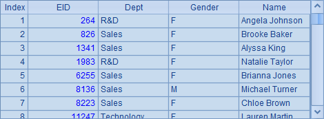 在A6中,用函数T.index(I, w; C,…) 为实表生成索引,A6中将索引命名为idx,并根据键EID生成。执行后,索引文件将自动生成,文件名自动处理。在A7中使用T.icursor(C,…; w, I) 函数查询时,可以根据索引文件来执行。B7中得到的结果和B4中是相同的。调用T.index(I, w; C,…) 函数时如果未设字段C,…,则会删除实表T的索引I,如果无参数I,则会删除实表T的所有索引。