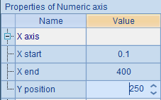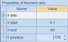 由于没有其它图元,因此将数值轴的Autocalc value range属性设为false,不根据使用该坐标轴的图元计算值域。横轴的绘制位置使用默认设定:
