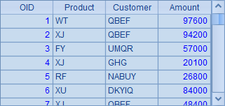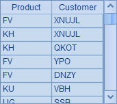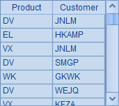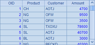 上面这个主网格的效果,是随机生成100条测试数据插入A1中的序表,记录由产品名与客户名随机构成。执行后,A1中的结果如下: